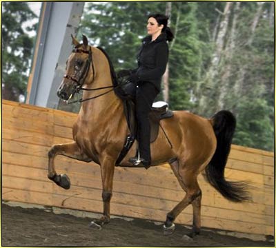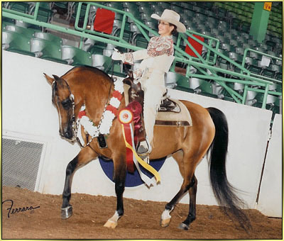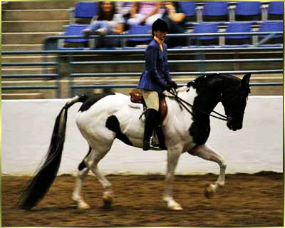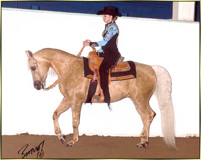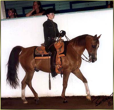 Picture is her mother, MTS Crystal, who is a 2-time Res. National Champion in both Halter and Country Pleasure.Fashionsta is very upright, very pretty, and has lots of motion. Definitely a Country Pleasure prospect. She is broke to ride. Owners have no time and way too many horses. Sweepstakes. A Steal at this price!!! SOLD