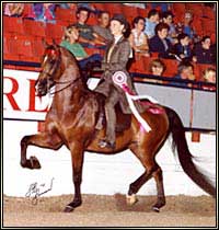 2-time Res. National Champion in HA Country Pleasure AAOTR and Halter. Many National Top 10's and Regional awards in both Country Pleasure and Halter. Has had one foal by Afire Bey V that is beautiful and trotty. Would also make an outstanding Show Hack or Equitation horse. Sweepstakes. Sold